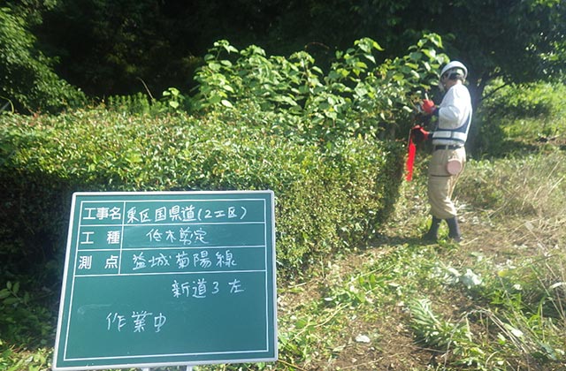 工事場所 一般国道57号 東バイパス龍田地区 道路維持 高木剪定 264本 低木剪定2680m2 中木剪定1360m2 除草工3300m2 応急処理工1式 道路修繕 高木点検 7本 道路交通機能の確保を前提にしつつ、美しい景観形成、沿道環境の保全、道路利用者の快適性の確保等、当該緑化に求められる機能を総合的に発揮させ、もって、道路空間や地域の価値向上に資するよう努めるとともに、交通の安全、適切な維持管理、周辺環境の整備を目的とする。On the premise of securing road transportation functions, we’ll comprehensively demonstrate the functions required of greening, such as creating beautiful landscapes, preserving the roadside environment, and ensuring the comfort of road users. We’ll strive to contribute to improving the value of road spaces and local areas, as well as ensure traffic safety, appropriate maintenance and management, and improve the surrounding environment.